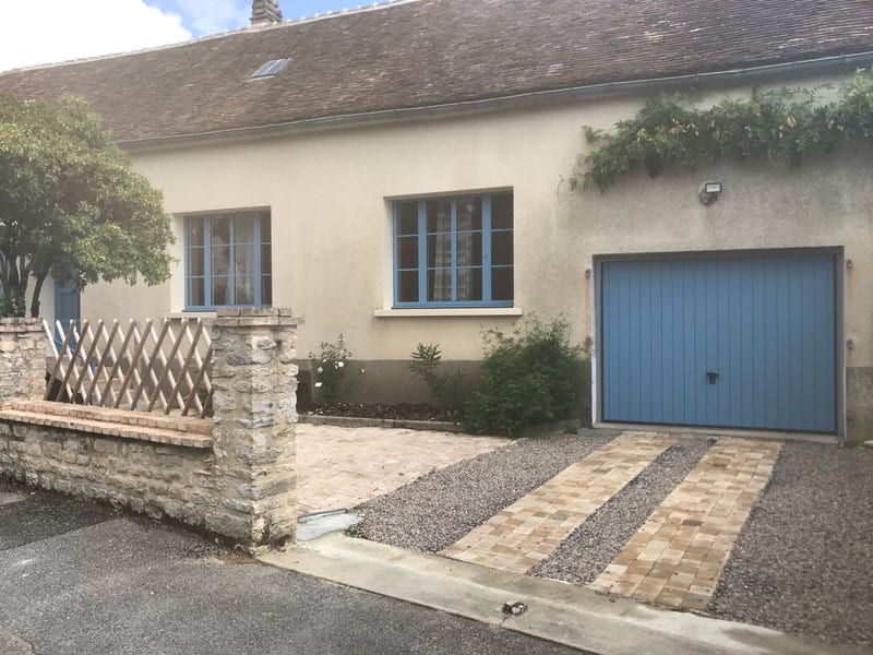Par ailleurs, afin d’harmoniser la porte de garage bois existante avec les fenêtres Alu que nous avons conçues, fabriquées et posées, nous l’avons faite laquer de la même couleur dans notre dépôt par un professionnel avant de la reposer.