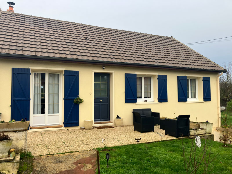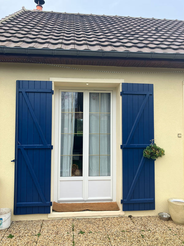 Conception, fabrication et pose de fenêtres et d’une porte-fenêtre en PVC composées de petits bois en laiton dans le double vitrage.