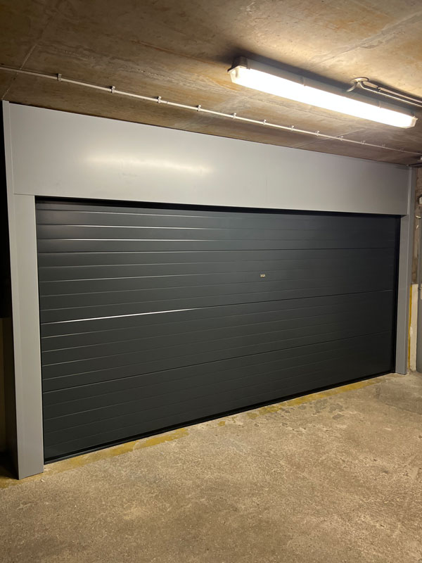 Conception et pose d’une porte de garage sectionnelle motorisée.