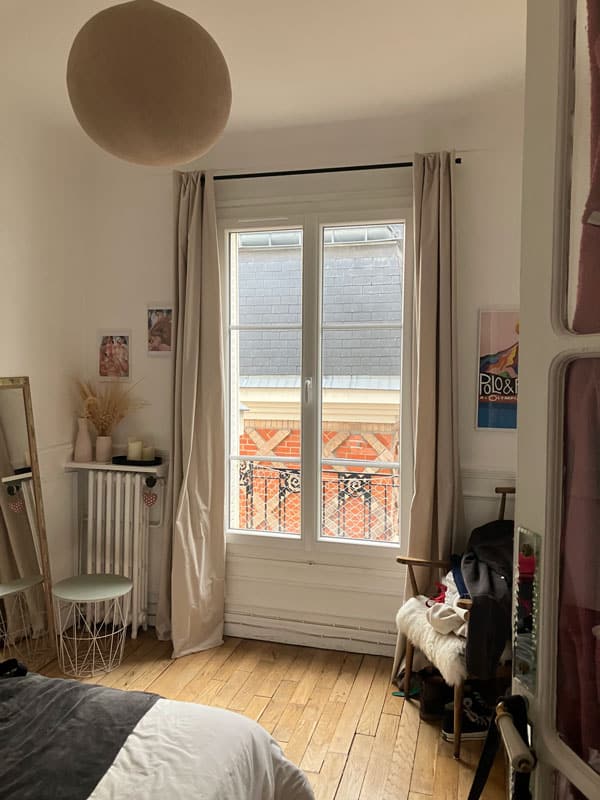 Rénovation avec des fenêtres en PVC double vitrage pour ce logement parisien : fabrication et pose en rénovation avec conservation des persiennes métalliques d’origine.