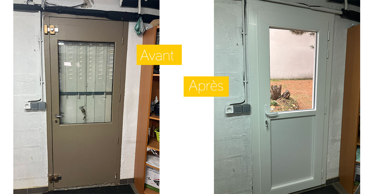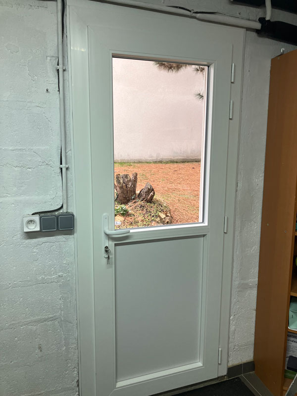 Conception, fabrication et pose d’une porte d’entrée en PVC composée en partie haute d’un double vitrage sécurité 44.2.