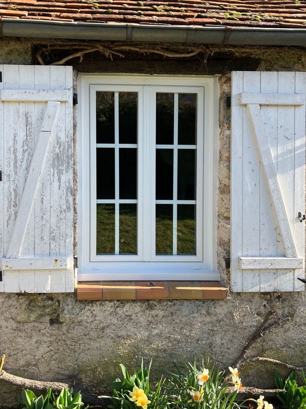 Pour la rénovation de cette maison, nous avons fabriqué et posé des fenêtres en PVC blanc avec des doubles vitrages composés de croisillons intégrés. Ce qui permet de garder un style classique et faciliter l’entretien des vitres.