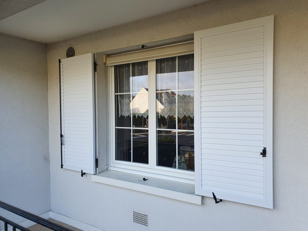 👉 Volets battants PVC à cadre, lames chevrons non ajourées