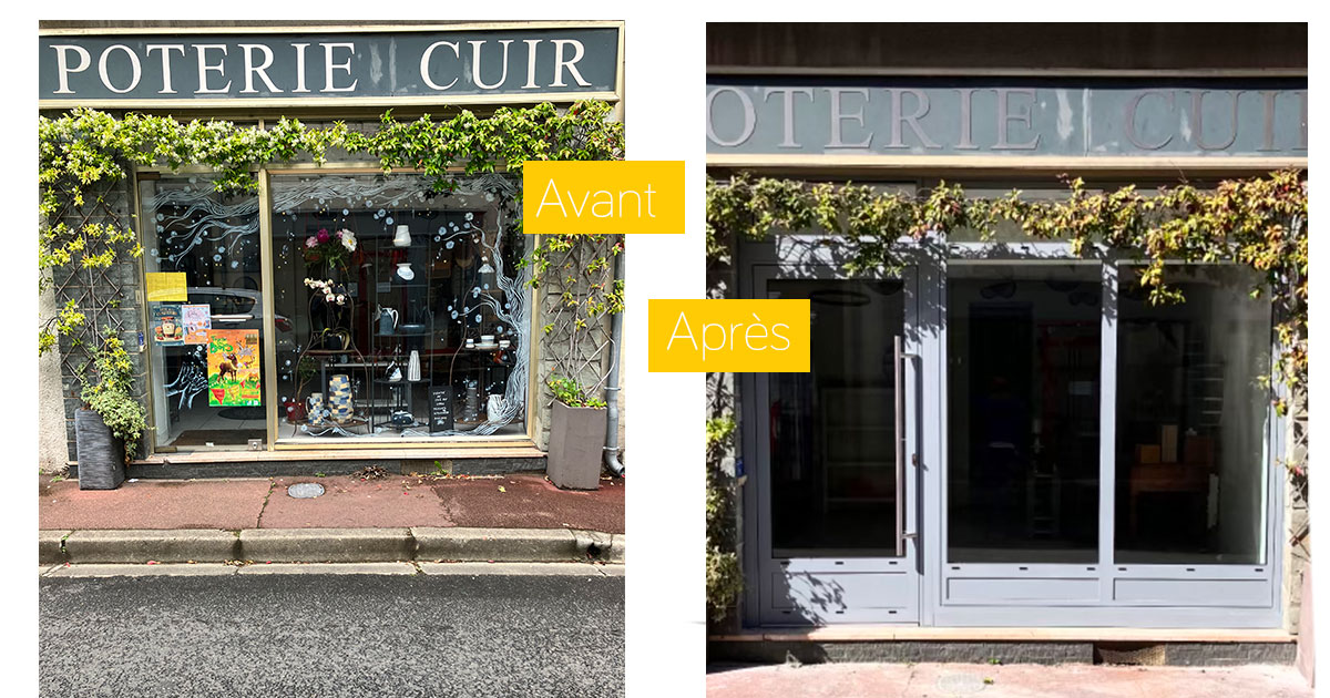AVANT/APRÈS la rénovation d’une vitrine de magasin.