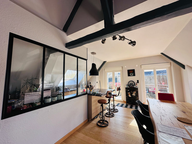 Conception, fabrication et pose de menuiseries en PVC blanc en triple vitrage et de volets roulants intégrés.