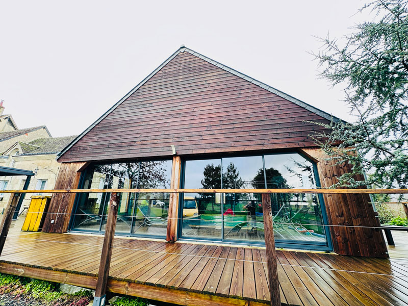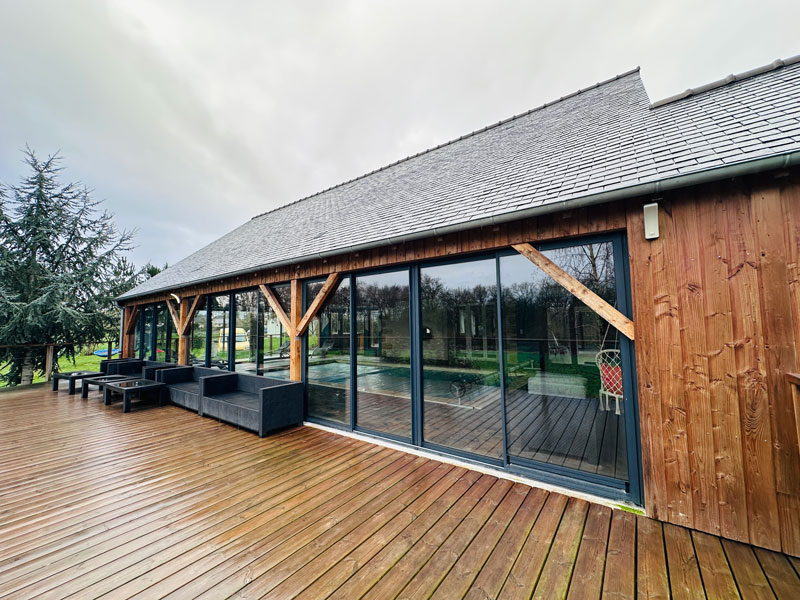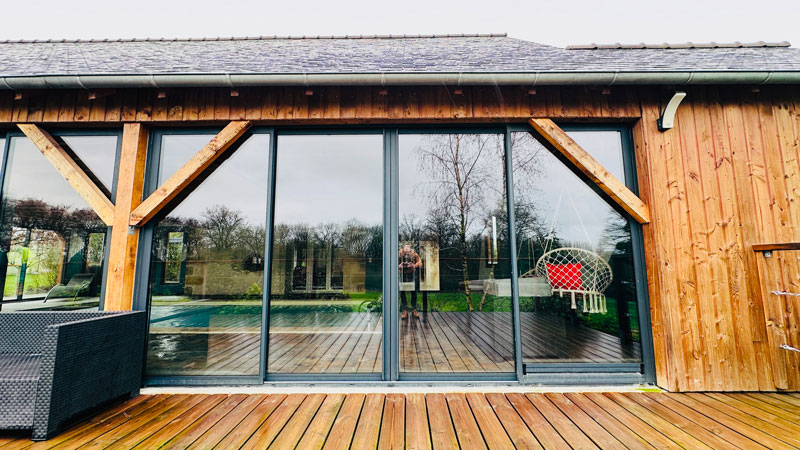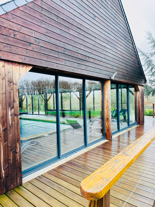 Conception, fabrication et pose de baies coulissantes double vitrage en aluminium.