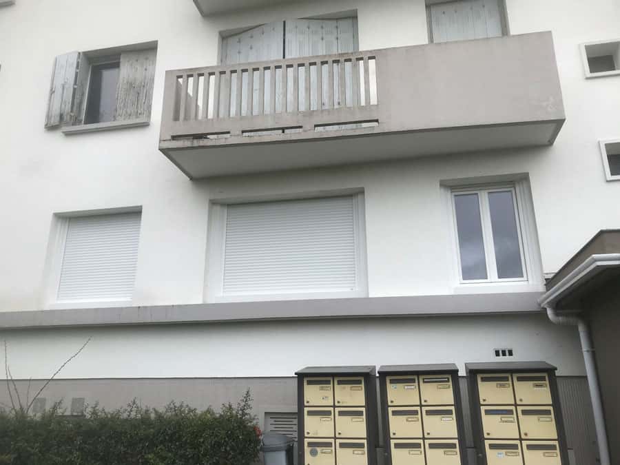 Rénovation avec dépose et pose de fenêtres en PVC double vitrage et de volets roulants monobloc encastrés dans un ancien menuisé en bois.